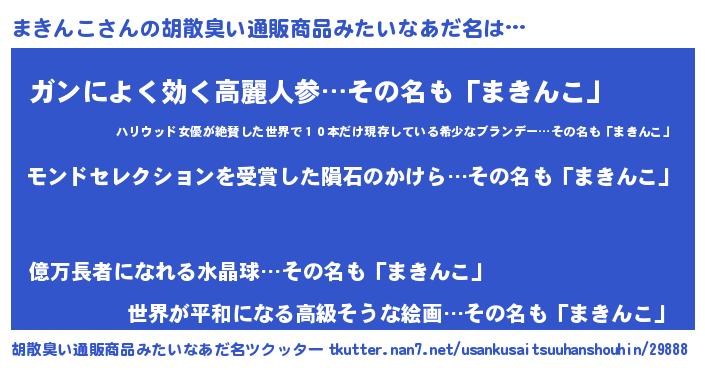 | 男性向けラノベタイトル風あだ名 | 『ノーゲーム・ノーマキンコ』 |
