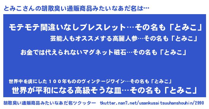 | 女子向けラノベタイトル風あだ名 | 『とみこ恋絵巻』『とみこ姫と円卓の騎士』 |