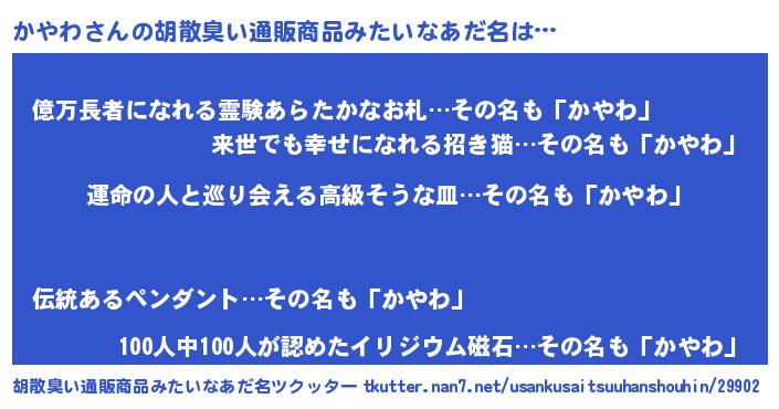 | ヘコむあだ名 | 『酢こんぶ』『かやっふぃ~』 |