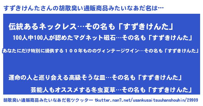 | 意味不明あだ名 | 『住所不定無職すずきけんた(7歳)』 |