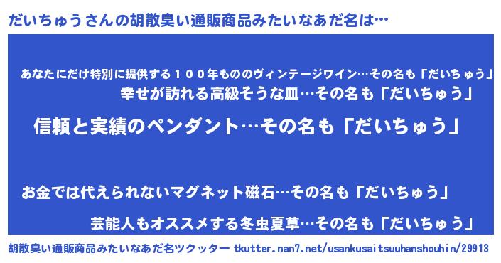 だいちゅうさんの胡散臭い通販商品みたいなあだ名をツクッター!