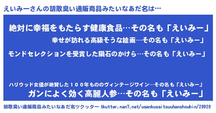 | ヘコむあだ名 | 『えいみー(苦笑)』『牛乳』 |