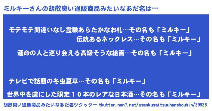 | ヘコむあだ名 | 『レバニラ』『ミルもー』『ミルを』 |