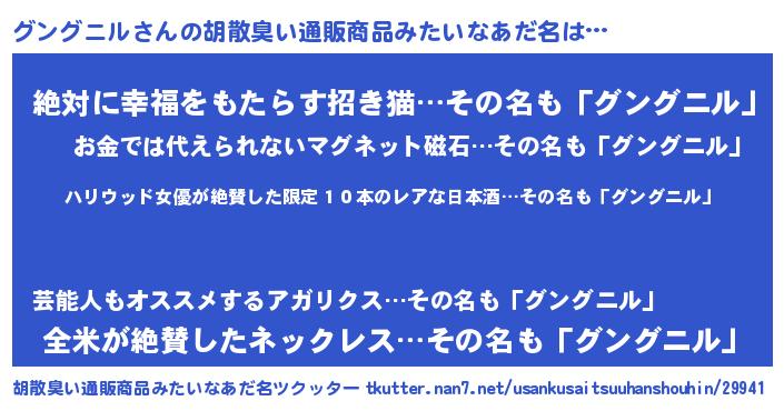 | ヘコむあだ名 | 『グングニル(笑)』『グンっちょ』 |