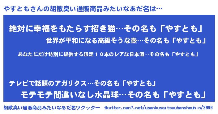 | ヘコむあだ名 | 『やすとも(爆)』『やすにー』『豆乳』 |