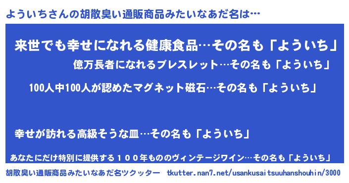 | ヘコむあだ名 | 『よういち(笑)』『ようにゅー』 |