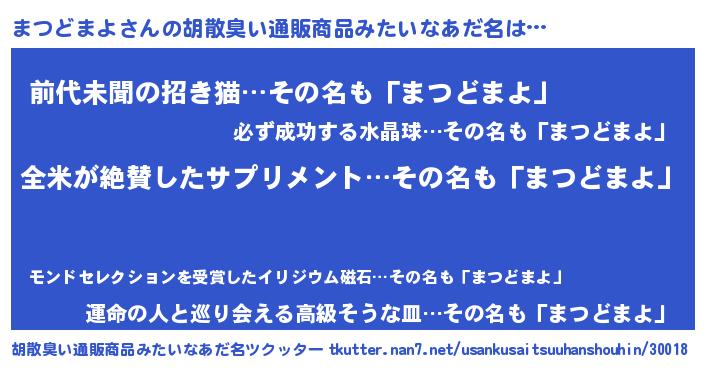 | 男性向けラノベタイトル風あだ名 | 『まつどまよの嫁は女の子じゃないと思った?』 |