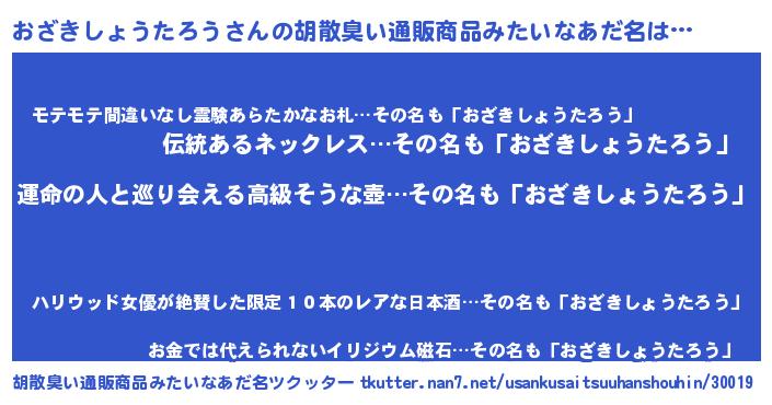 | 意味不明あだ名 | 『つくし科おざきしょうたろう属』 |