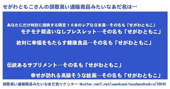| ヘコむあだ名 | 『せがわともこ(爆)』『なまこ酢』 |