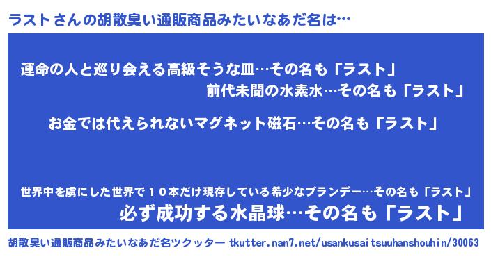 | 女子向けラノベタイトル風あだ名 | 『ラスト恋絵巻』『ラストの婚約者』 |