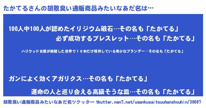 | 意味不明あだ名 | 『住所不定無職たかてる(71歳)』 |
