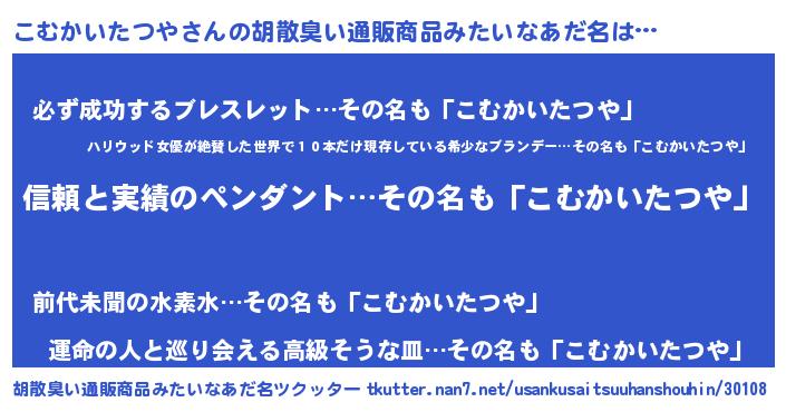 | 男性向けラノベタイトル風あだ名 | 『はたらくこむかいたつやさま!』 |