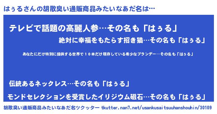 はぅるさんの胡散臭い通販商品みたいなあだ名をツクッター!
