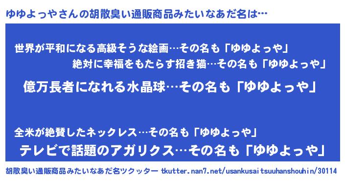 | ヘコむあだ名 | 『ゆゆふぇ~』『豆乳』『ゆゆお』 |