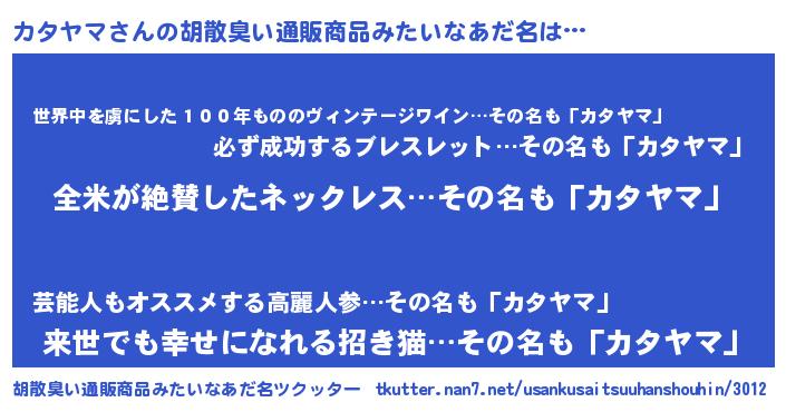 | 肩書あだ名 | 『カタヤマ塾長』『カタヤマ少佐』 |