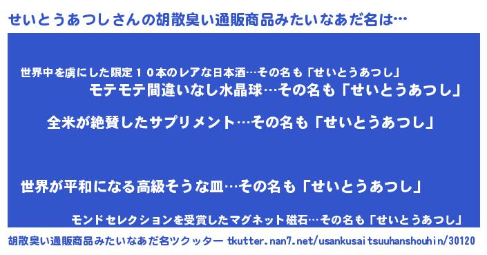 せいとうあつしさんの胡散臭い通販商品みたいなあだ名をツクッター!