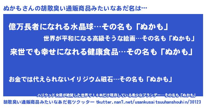 | ヘコむあだ名 | 『ぬかも(爆)』『ぬかふぇ~』 |