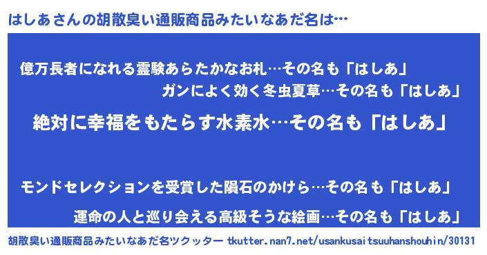 | 意味不明あだ名 | 『めかぶ科はしあ属』『永久保存はしあ』 |