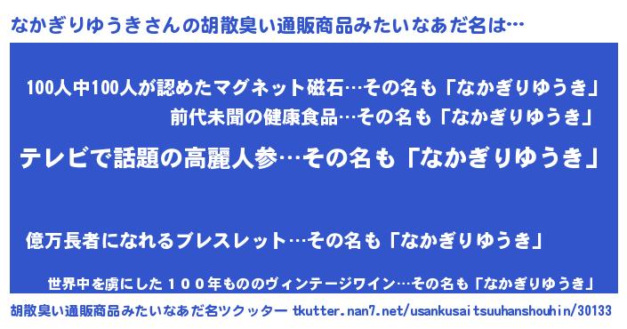 | ヘコむあだ名 | 『なかぎりゆうき(笑)』『なかにー』 |