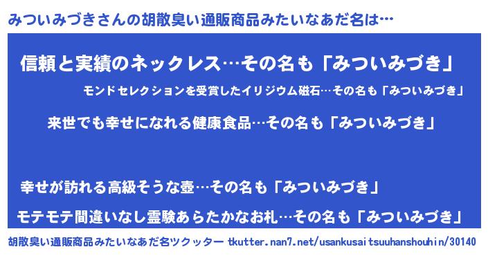 | ヘコむあだ名 | 『みついみづき(爆)』『みつっ子』 |