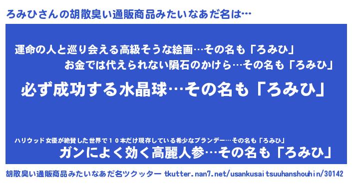 | ヘコむあだ名 | 『ろみにゅー』『レバニラ』『ろみを』 |