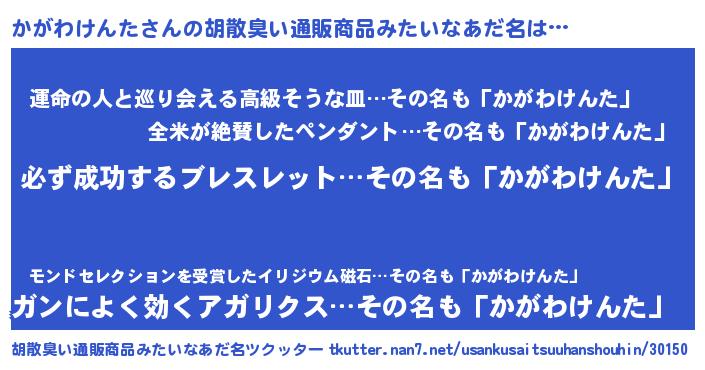 | 男性向けラノベタイトル風あだ名 | 『かがわけんたの憂鬱』 |