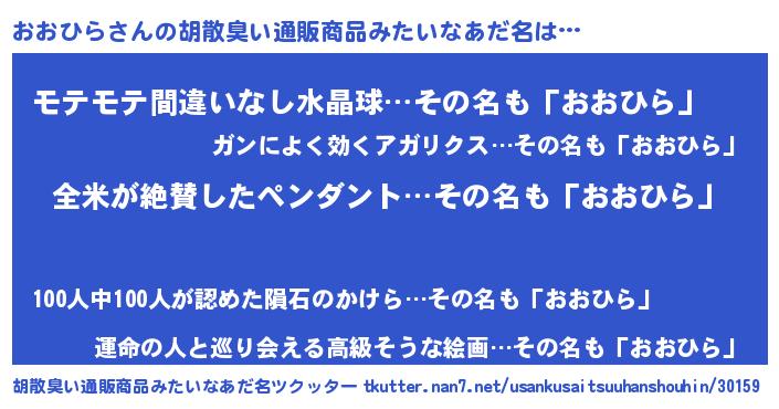 | 意味不明あだ名 | 『とにかく怪しいおおひら』 |
