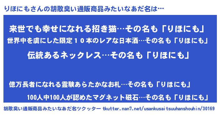 | ヘコむあだ名 | 『りほっ子』『りほにも(爆)』『牛乳』 |