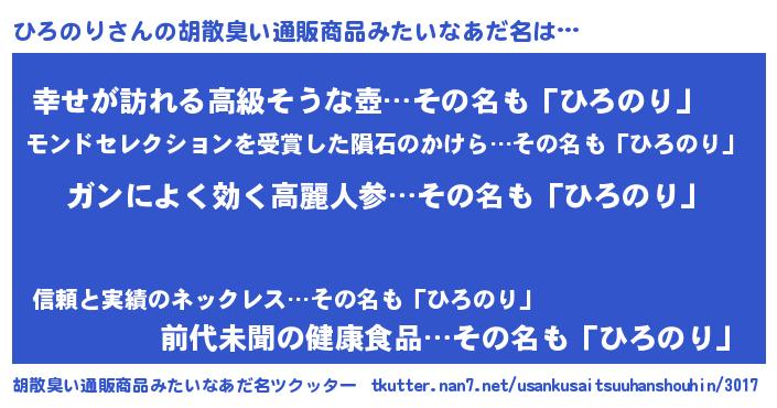 | 意味不明あだ名 | 『自称ひろのり』『ひろのりフォーエバー』 |