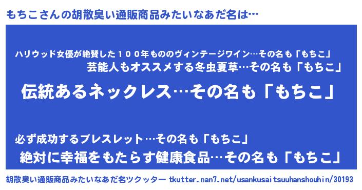 | 意味不明あだ名 | 『とにかく怪しいもちこ』『自称もちこ』 |