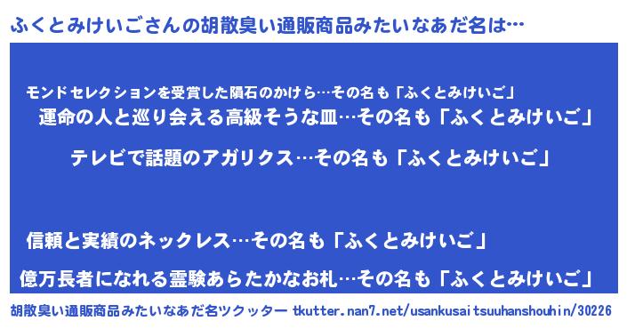 ふくとみけいごさんの胡散臭い通販商品みたいなあだ名をツクッター!