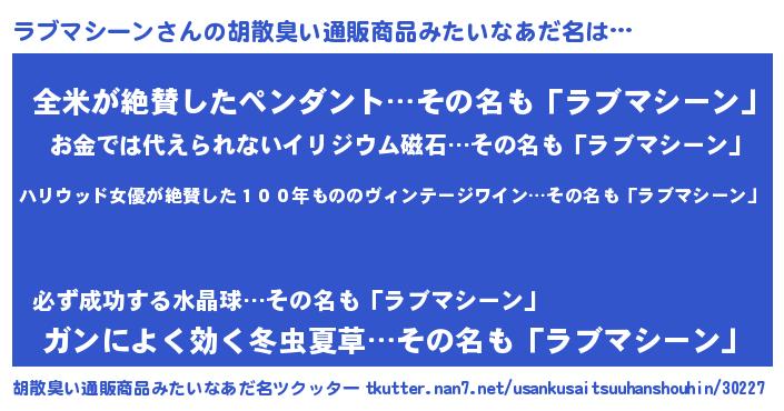 | 意味不明あだ名 | 『住所不定無職ラブマシーン(1歳)』 |