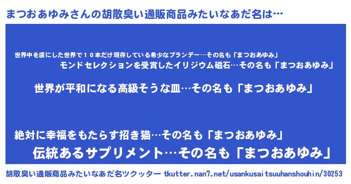 | 意味不明あだ名 | 『まつおあゆみフォーエバー』 |