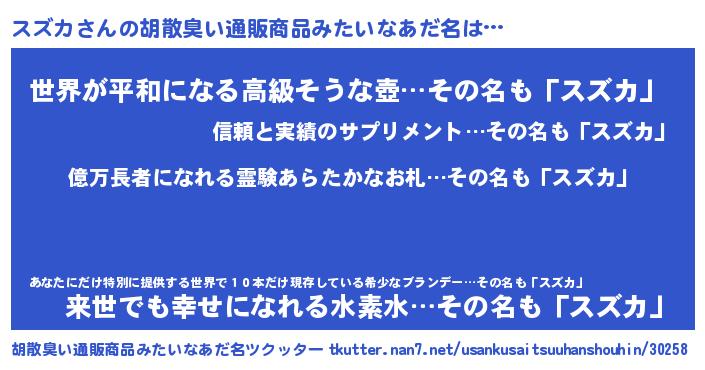 | ヒーロー風カッコイイあだ名 | 『スーパースズカ』『ウルトラスズカマン』 |