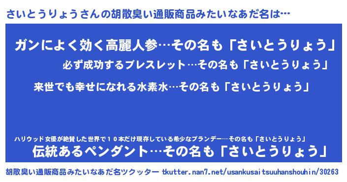 | ヘコむあだ名 | 『さいとうりょう(遠い目)』『さいを』 |