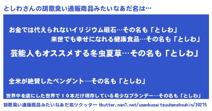 | ヘコむあだ名 | 『としわ(震え声)』『とし太郎』 |