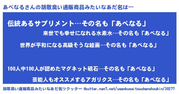 | 肩書あだ名 | 『あべなる総理大臣』『あべなる中佐』 |