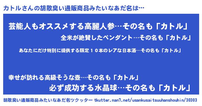 | ヒーロー風カッコイイあだ名 | 『仮面カトダー』『ウルトラ戦士カトル』 |