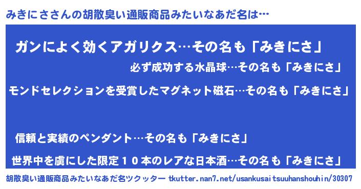 | ヒーロー風カッコイイあだ名 | 『天空の使者みきにさ』『仮面ミキダー』 |