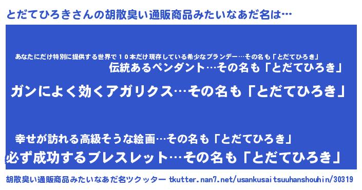 | 意味不明あだ名 | 『自称とだてひろき』 |
