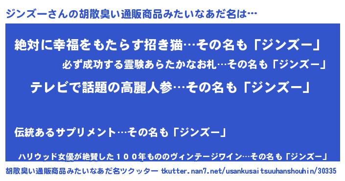 | ヘコむあだ名 | 『ジンズー(笑)』『ジンにー』 |