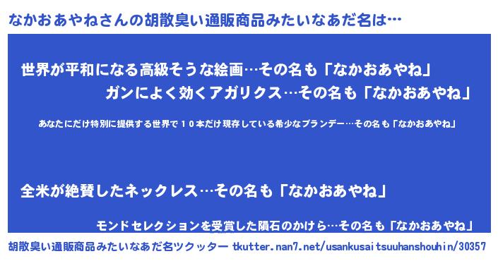 | 意味不明あだ名 | 『住所不定無職なかおあやね(77歳)』 |