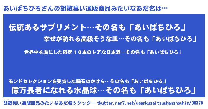 | 意味不明あだ名 | 『住所不定無職あいばちひろ(59歳)』 |