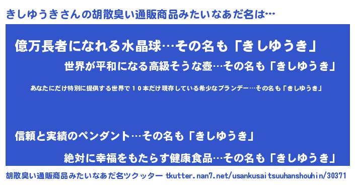 きしゆうきさんの胡散臭い通販商品みたいなあだ名をツクッター!