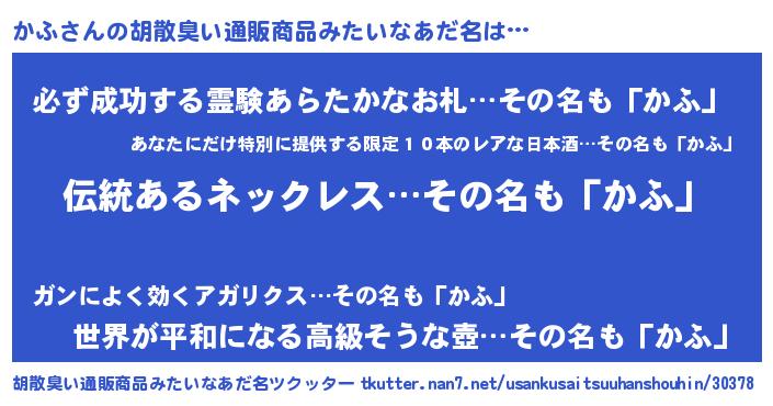 | 男性向けラノベタイトル風あだ名 | 『転生したらかふだった件』『かふの憂鬱』 |
