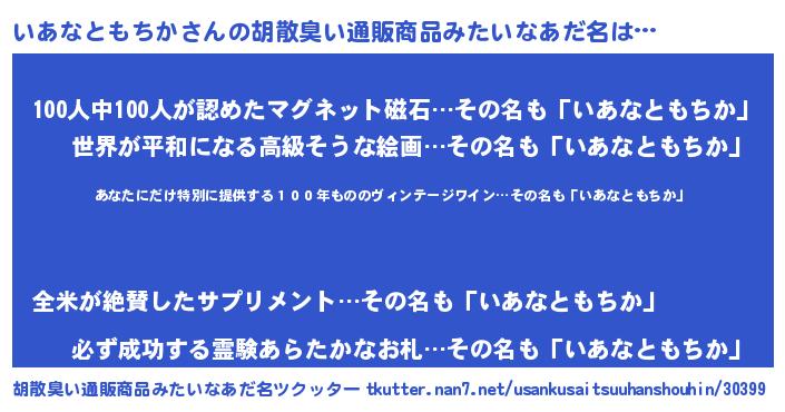 | 意味不明あだ名 | 『住所不定無職いあなともちか(3歳)』 |