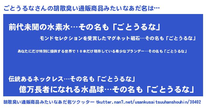 | ヘコむあだ名 | 『ごとうるな(震え声)』『ごとっふぃ~』 |