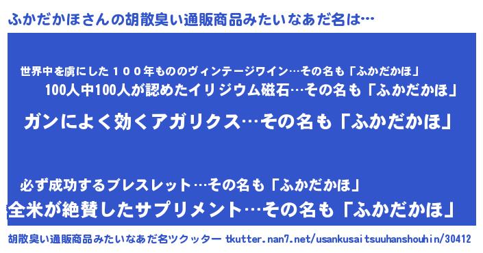 | 意味不明あだ名 | 『自称ふかだかほ』 |