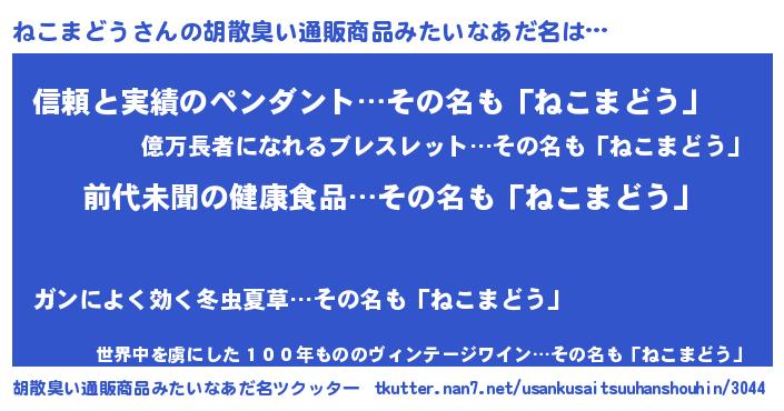 | 意味不明あだ名 | 『永久保存ねこまどう』 |
