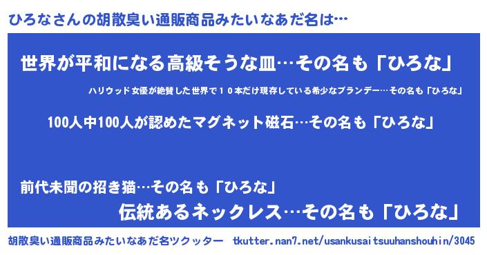 | ヒーロー風カッコイイあだ名 | 『友情の使者ひろな』『天弓騎士ヒロ』 |